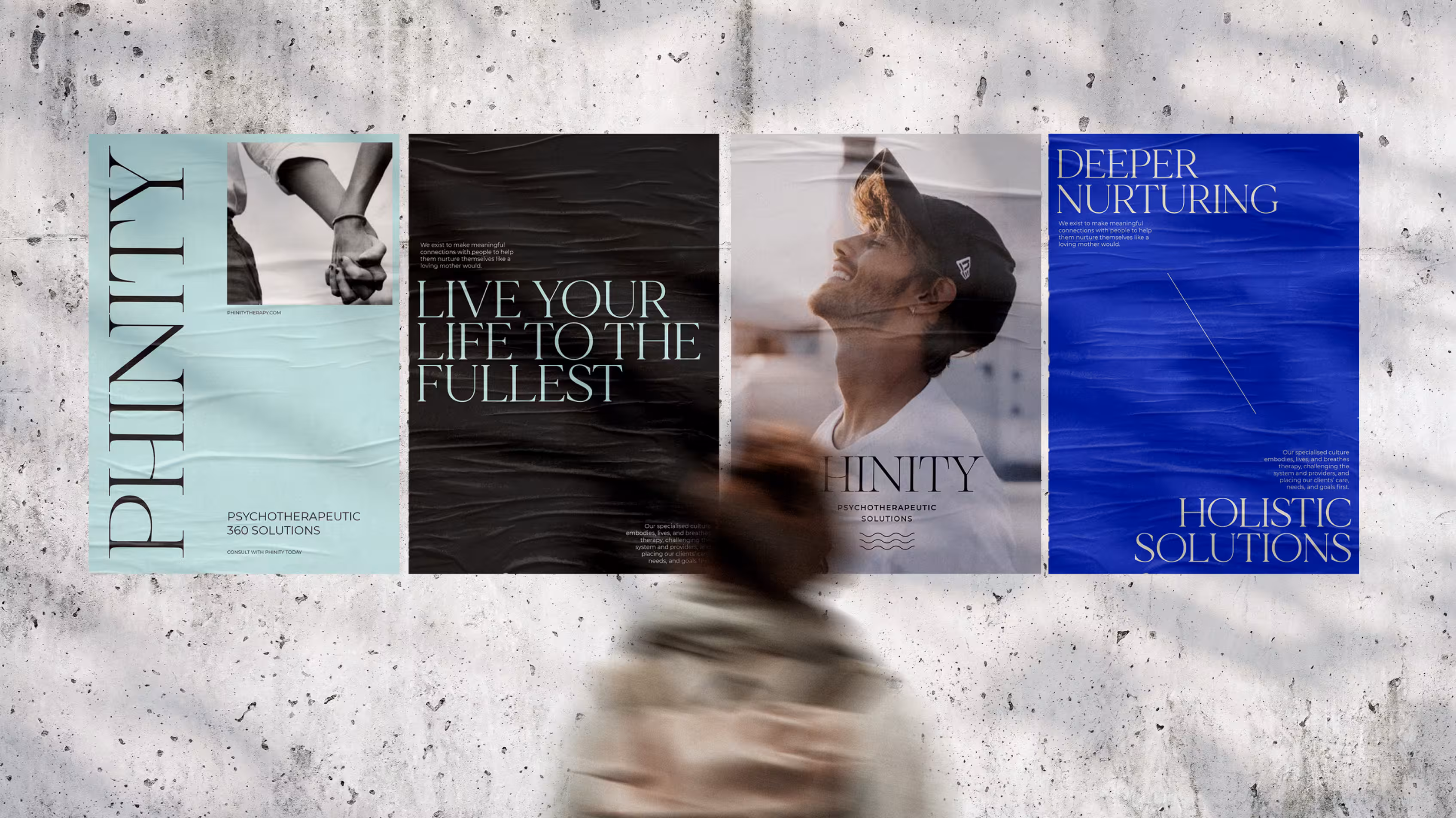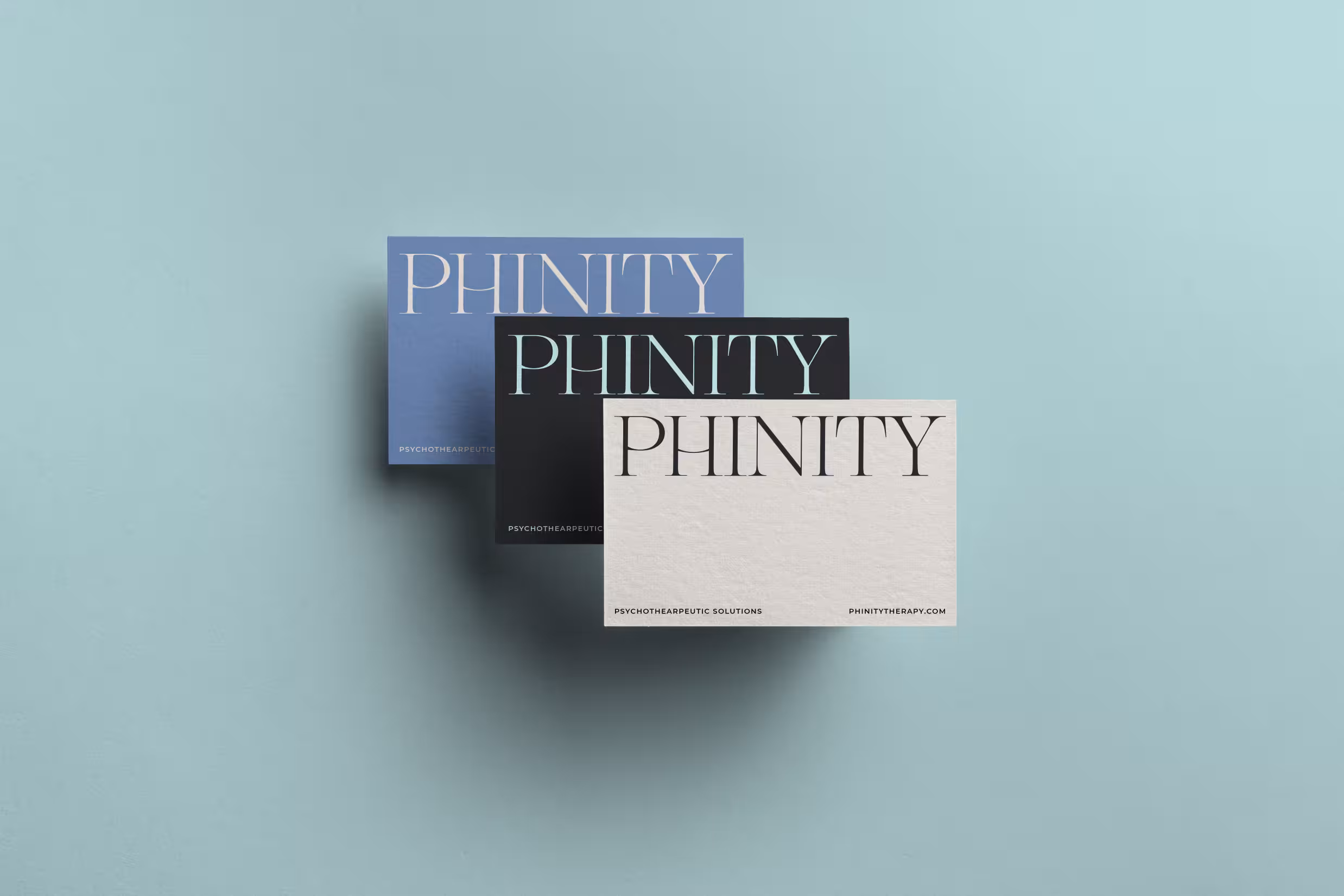 This narrative allowed Phinity to confidently step outside the overly soft or clinical tone often found in the therapy space. Instead, we anchored the brand in emotional intelligence, grounded professionalism, and intentional warmth—qualities reflected in their team’s approach.