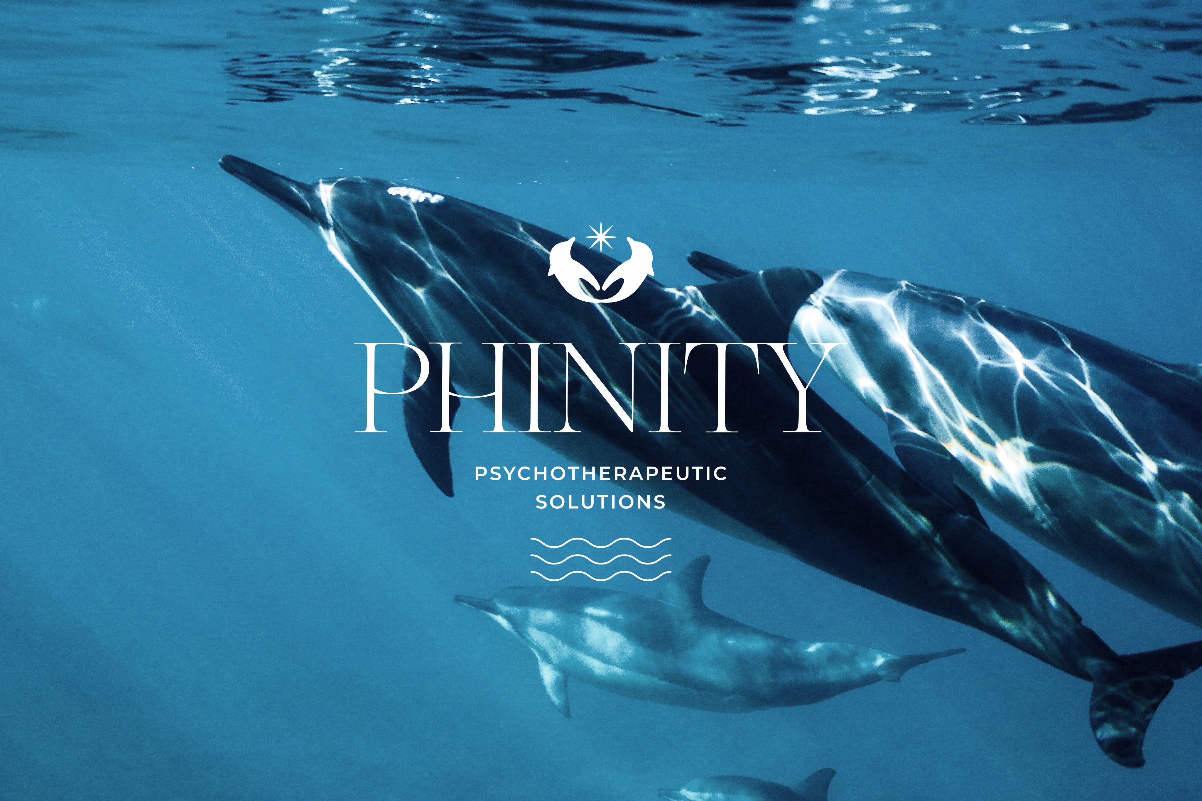 Phinity’s visual identity strikes a balance between emotional intelligence, structure, and human-first philosophy. The mark integrates dolphins (grace, intelligence, connection), hands forming a heart (care and support), and a triple wave symbolizing their core archetypes—leader, nurturer, and explorer. We designed a system where even the wordmark alone could serve as a flexible, confident design base. Variations allowed for elegant layout play while maintaining consistency. The refined palette and typography moved away from clinical or overly soft aesthetics—resulting in a brand that feels grounded, modern, and distinct.