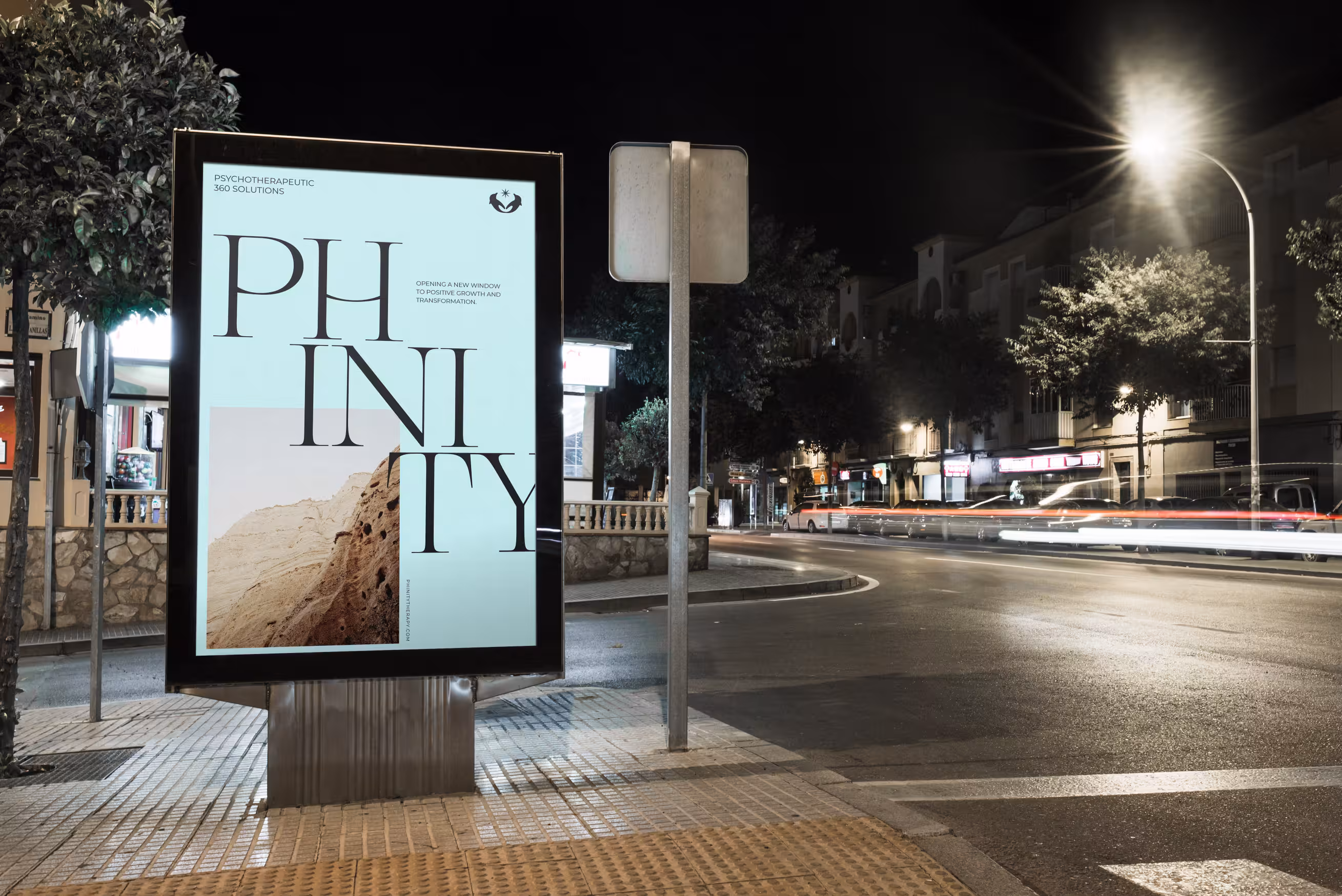 Phinity Therapy approached us as a brand-new private clinic preparing to enter the competitive UK mental health space. With no name, no brand system, and no market presence, they needed a full foundation for launch—something that would feel trustworthy, intelligent, and professional, but still accessible and warm for a global client base.